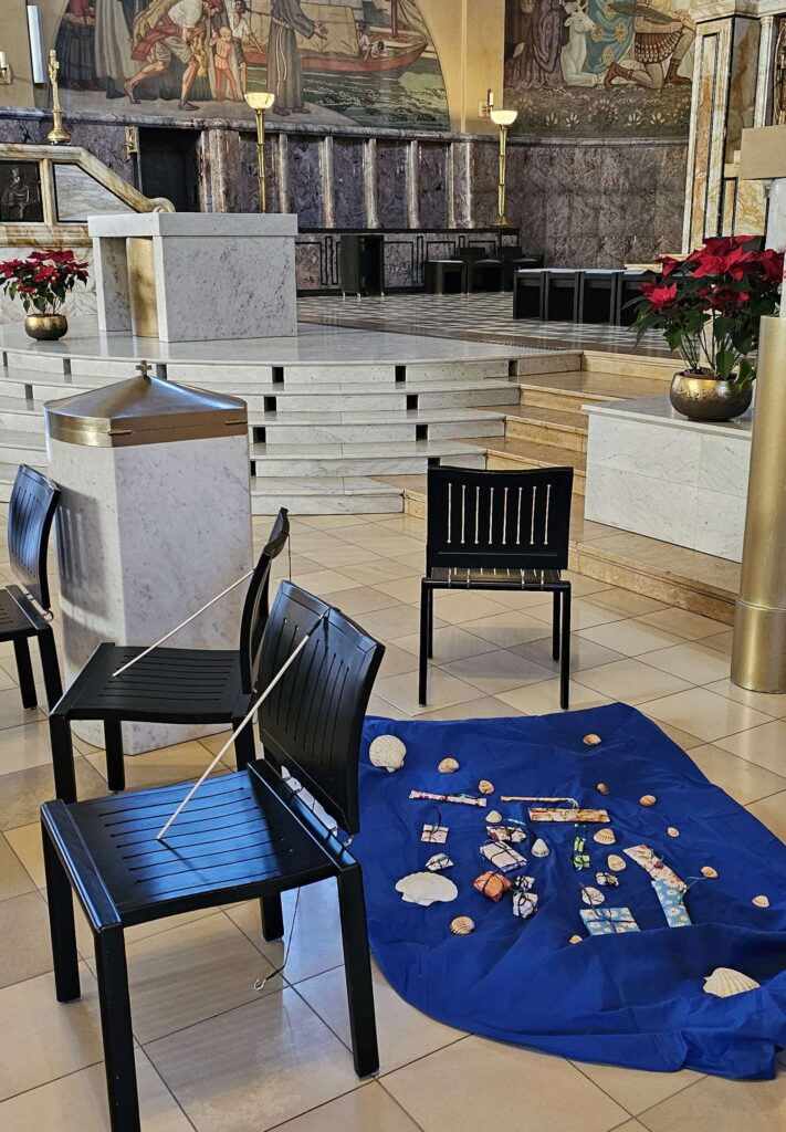 Im Mittmachgottesdienst zogen Kinder als Heilige verkleidet mit ein. In der Predigt griff Vikar Wojciech das Thema auf und die Kinder durften das was sie auf dem Parcours über Heilige erfahren haben miteinbringen. Zum Schluss des Gottesdienstes wurde der Blasiussegen gespendet.