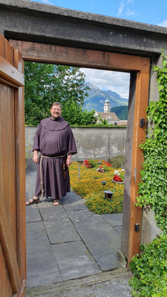 Bei Kaffee und Gebäck im Refektorium erzählte uns Bruder Christoph-Maria Hörtner die spannende Geschichte rund um das Kloster und seine Umgebung.  Das Interesse der Teilnehmenden war gross. Die vielen Fragen beantwortete Bruder Christoph-Maria mit Enthusiasmus und Humor. Anschliessend führte er uns durch das Kloster und den Klostergarten. Bei schönem Wetter genossen wir die wunderbare Aussicht auf die Glarner Berge.
